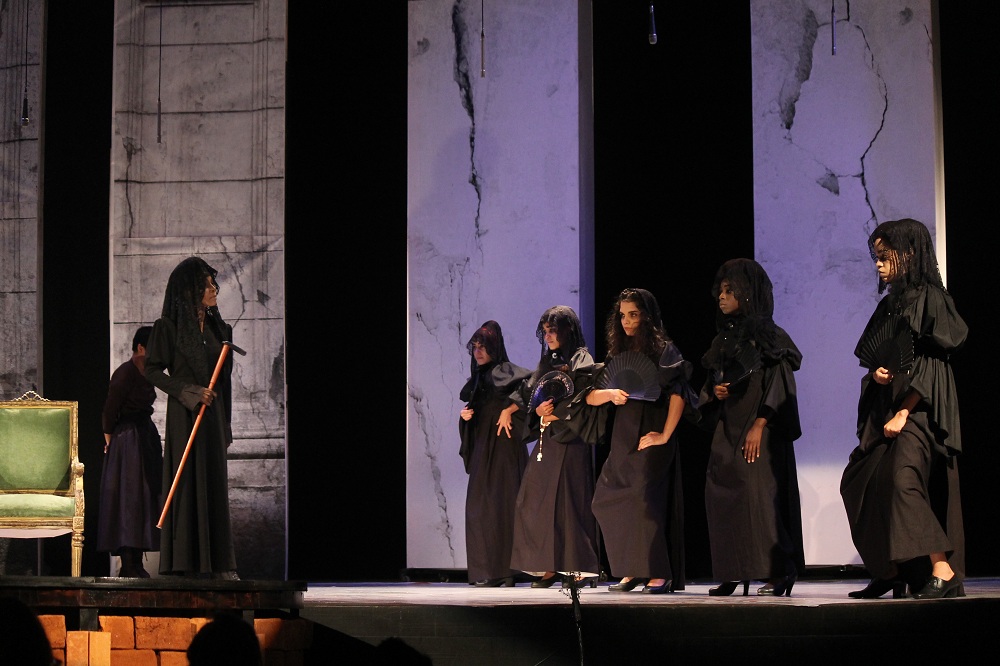 ¿Cómo representar de manera diferente un clásico de la literatura universal? Este fue uno de los mayores retos para el director de CLAU, Carlos Aguilar. Estaba consciente de que necesitaba desentrañar la obra y ramificarla más allá de conceptos gastados. “Tenía que hallar la metáfora total de lo que significaba y contenía ese texto”. Para él esta puesta en escena de casi dos horas es el “retrato” de una familia que pertenece a la burguesía terrateniente con tintes aristocráticos —una clase muerta— del propio pueblo de García Lorca. Yordanka Ariosa (Bernarda), Mayra Mazzora (Poncia), Chabely Díaz (Adela), Juannalise Ricardo (Martirio), Osmara López (Angustias), Sindy Rosario (Amelia) y Lissette de León (Magdalena) son parte del elenco.