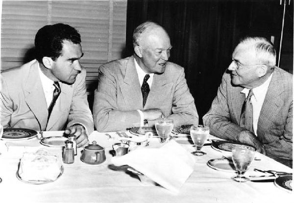 En 1952 Dwight David Eisenhower lo elige como su compañero de fórmula para vice por el Partido Republicano. Desde enero de 1953, y hasta enero de 1961, tras la reelección de 1956, Nixon mantuvo ese cargo. Usualmente los vicepresidentes, al menos en los Estados Unidos, resultan figuras anodinas. Richard Milhous Nixon no lo fue. Eisenhower, de hecho, delegó muchos poderes en su vice. En la historia moderna de los Estados Unidos quizá no haya existido nunca un vicepresidente que aunara tanto poder y tanta actividad: ¡por tres veces, a partir de la enfermedad de Eisenhower, asume Nixon la presidencia! Durante todos esos años, delegado por el Presidente, visita un total de 55 naciones en calidad de Embajador Extraordinario. En poco más de siete años Nixon le tomó el pulso a buena parte del mundo. En algunos sitios para alentar latidos, en otros para cortarlos.
