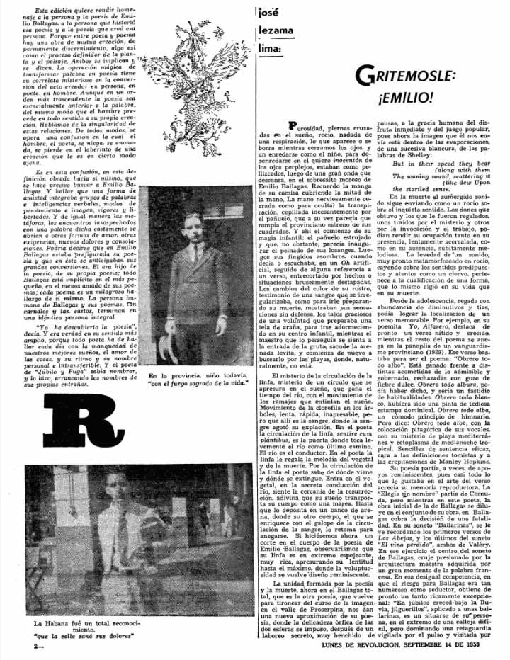 “Es hoy Ballagas mejor comprendido a partir de que tuvimos que salir de nosotros, como él, dejar de contemplarnos, sin renunciar a la fuga hasta encontrar al otro o hacia lo Otro y enfocarnos en la aventura de leer la Obra, que es la Poesía, dejando fuera los ecos de la zafia vida literaria”.