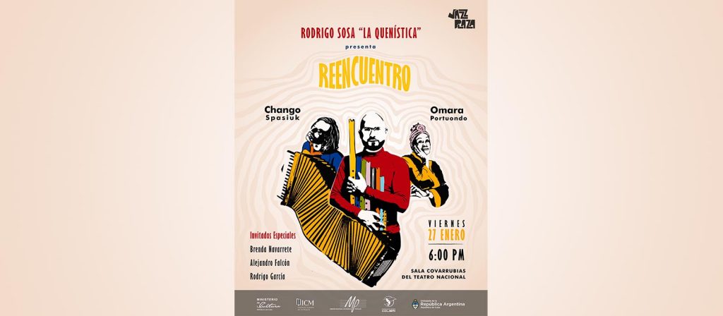 Rodrigo Sosa es un quenista misionero que, con su arte, se ha hecho un lugar en la comunidad artística cubana. Hace más de veinte años lo conocí en sus inicios y hoy nos toca compartir un concierto juntos en Cuba. Y tocar música de nuestra amada música popular. Y tener juntos el privilegio de ser bendecidos con la presencia de Omara Portuondo y compartir música con ella.