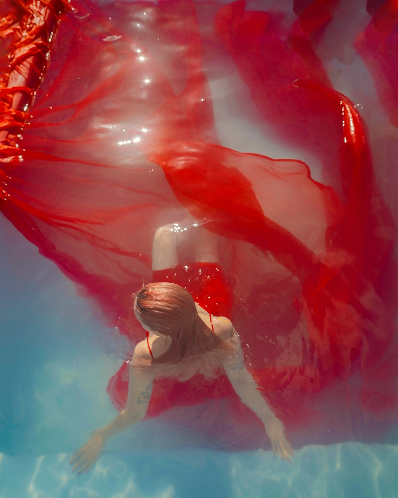 En esta ocasión May busca mezclar, la fotografía, el teatro y a la mujer desde el simbolismo del color rojo.
