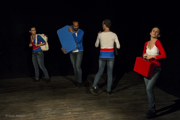 La palabra es sintética, en fragmentos monologados o en ráfagas que se cruzan con la de los otros y tejen un crescendo en el ensayo de la pertenencia que los une. Los versos y las citas se recrean en licencias poéticas y rítmicas que exploran en nuevos sentidos. El trabajo con los objetos manifiesta la aprehensión de técnicas familiares que crecen en elocuencia. La mochila de guerrillera de Haydée, sus piedras y su amada bandera; el portafolio lleno de partituras del músico; la maleta del poeta con el tesoro que son sus libros, y el neceser de Rita con su inseparable micrófono, bastan como sintéticos atributos para corporizar deseos y revelar el alma de los caracteres. Sumado a la búsqueda actoral, el vestuario de Zenén Calero, en tricolor patrio, elige una sencillez cercana al presente y efectiva para que el montaje pueda alcanzar los escenarios más diversos por la Isla. Y el coreógrafo vuela en lo sonoro al hilvanar con sentido dramático temas de Lecuona con Matamoros, Eduardo Saborit, Carlos Puebla, Edesio Alejandro, Gema Corredera y Los Muñequitos de Matanzas, entre otros.