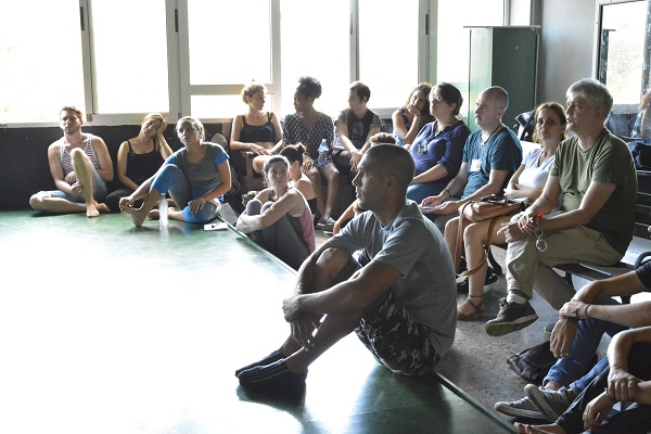 Me interesa hablar no tanto de un taller y sí de un impulso. Un impulso hacia el conocimiento y hacia el cruce entre tanta gente de lugares diferentes que ha llegado y, por supuesto, eso en cuatro días no se puede lograr de manera óptima. No me gusta hablar de talleres y talleristas porque siento que esos términos no siempre resuelven, por eso hay que pensar nuevas alternativas en voz de todos, con nosotros y por nosotros. Este proyecto de Traspasos Escénicos se inició hace seis años con una performance o una especie de saludo por el actor Alexis Díaz de Villegas a la casa de Vicente Revuelta, que fue maestro de alguna manera de casi todos los que hacemos teatro en Cuba y siempre nos enseñó a imponernos.