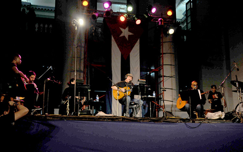 Y dio más que una canción a Santa Clara la noche de este viernes. El público, entusiasta, alimentado por la poética de la nueva trova, vitoreó al cantautor cubano. Y el cantor fue entregando a la ciudad, como en un nacimiento, sus temas antológicos (La era está pariendo un corazón, La maza, El reparador de sueños…) y sus nuevas creaciones (Viene la cosa).