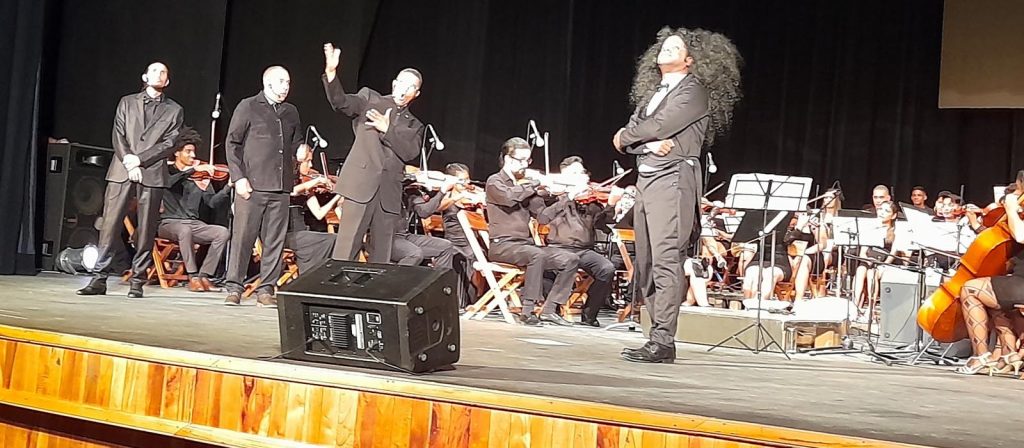 Un recorrido por la historia de la música llamada de concierto es el pretexto de Kike Quiñones para la puesta en escena de Sinfonía con de nada, estrenada el 28 de agosto de este 2022 en el Teatro Bayamo. Respaldado por el proyecto de Orquesta Sinfónica de la oriental ciudad, encarna jocosamente el rol de director de orquesta.