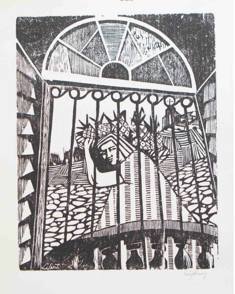 Los interiores domésticos y la temática histórica se alejan del esteticismo identitario y la apología épica de falsas alabanzas para dotarles de la calidez de la viñeta y el simbolismo de matiz cívico-social (serie Casa de vecindad, 1960 y “II Declaración de la Habana”,1962), mientras que a lo religioso instituido le sustituyen la religiosidad popular, la fe en los santos protectores de todo gremio —en este caso el de los grabadores— y la reflexión sobre los dolores más intensos e insuperables de la vida.