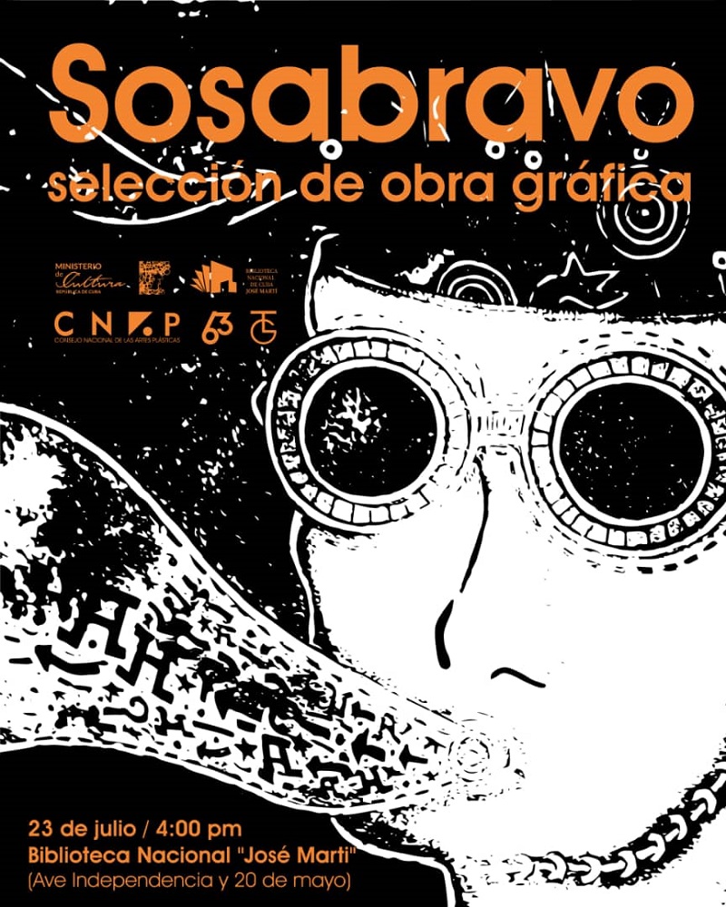 La exposición Sosabravo: selección de obra gráfica fue inaugurada en la galería “El reino de este mundo” de la Biblioteca Nacional de Cuba José Martí este 23 de julio y reúne piezas de su amplia cosecha personal, todas atesoradas por el Taller Experimental de la Gráfica.