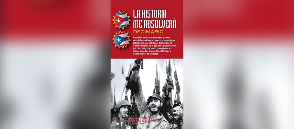 La historia me absolverá. Decimario: una rareza editorial Por: Fernando Rodríguez Sosa “El propósito del autor es presentar La historia me absolverá en estrofas decimales y versos octosílabos, empresa nunca antes realizada”. Ver más