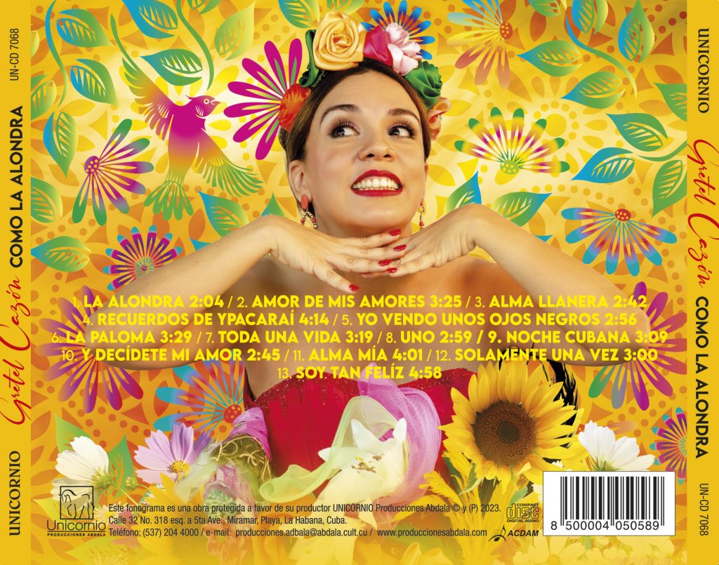 Como la alondra, desde el concepto mismo del diseño, juega con los colores, la evocación a esa naturaleza mágica que distingue a esta zona del mundo y que al decir del gran Carpentier se integra a ese real maravilloso que no es más que la conjunción de elementos que, por muy divergentes que parezcan, se atan a un concepto de verdad genuina y singular. En medio de esa atmósfera ideada por el diseñador Ricardo Monnar se inserta la figura de Gretel Cazón como salida de un libro que —como intérprete-narradora— recrea temas emblemáticos del alma latinoamericana, y para ello se mueve entre el bolero, el joropo, pasando por la habanera, hasta sellar con el bolero. Algún especialista denotó al ver el diseño del disco que remedaba a figuras como Lila Downs o Frida Kahlo, y es que, de alguna manera, el concepto de identidad latinoamericana bien explicitada desde la canción simultanea de igual grado a nivel de dinámica visual.