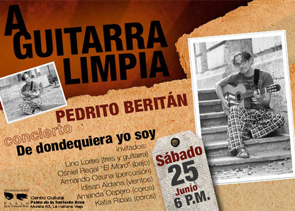 La música de Pedrito Beritán ha encontrado refugio, en más de una ocasión, en el Centro Cultural Pablo de la Torriente Brau. Amante de las canciones de Silvio Rodríguez y Pablo Milanés, el trovador granmense será protagonista, en este mes de junio, del espacio A guitarra limpia.