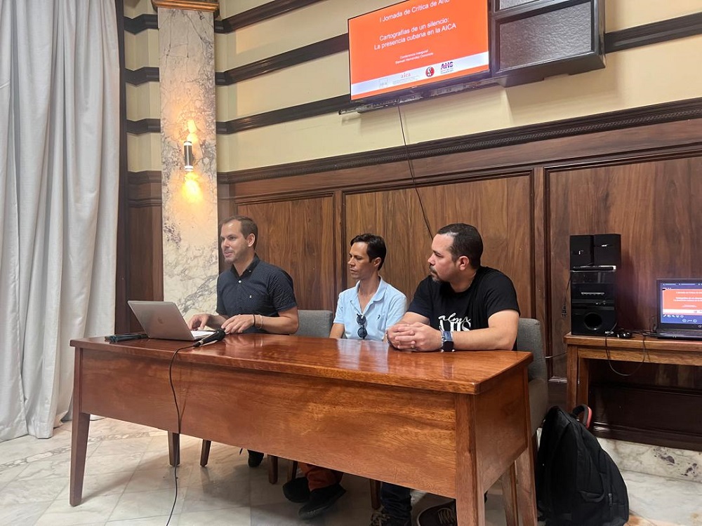 Con el título Cartografía de un silencio: la presencia cubana en la AICA, Samuel abundó en detalles acerca de las primeras manifestaciones y acercamientos de los críticos cubanos hacia la organización gremial internacional, utilizando como pivote otra investigación, esta de la autoría de la doctora Luz Merino Acosta, especialista de historia del arte, recientemente fallecida. También el ponente empleó una investigación previa de la doctora Adelaida de Juan, pionera de la AICA en Cuba, texto que la eminente historiadora de arte dio a conocer en 2016, en ocasión de realizarse en La Habana el 49 Congreso Internacional de la AICA.