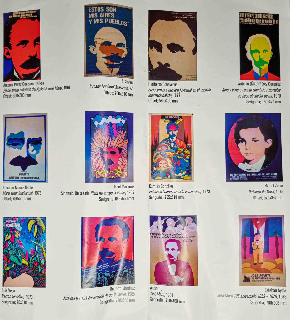 Están en exposición 12 carteles realizados durante la llamada “época dorada” del cartel cubano (1965-1975), que se expande hasta el período de 1980. Producciones gráficas de autores como Antonio Pérez (Ñiko), Heriberto Echeverría, Eduardo Muñoz Bachs, entre otros. Por otra parte, creadores como Raúl Martínez y Rafael Zarza, mayormente conocidos por su desenvolvimiento pictórico, también se presentan aquí con un trabajo gráfico de excelente valor estético. Pioneros de la cartelística cubana con una nueva visualidad en apoyo a los nuevos ideales de la época post-revolucionaria; y, como germen ideológico, el ideario martiano, piedra angular de la dignidad humana.