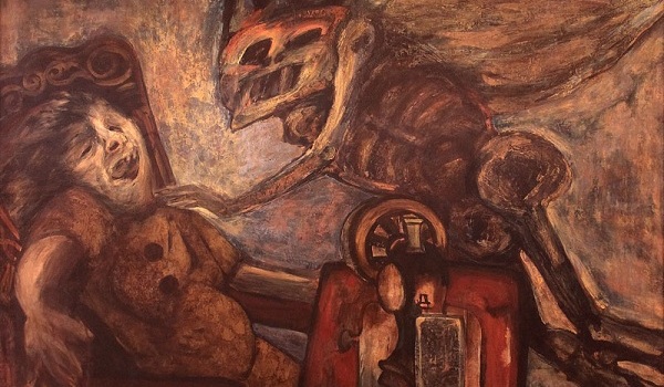 Solo que, en esta ocasión, el Arcángel escogido por la pintora no anuncia precisamente una buena noticia. Sus palabras no traen alegrías ni parabienes. Todo lo contrario: proclaman algo desagradable. ¿Y qué puede ser más desagradable que la muerte? Entonces, no se trata de Gabriel, sino de otro jefe angelical. ¿Será, tal vez, un psicopompo, al igual que el san Miguel Arcángel? ¿Será, acaso, Azrael, el Arcángel de la Muerte, según creen los judíos y los musulmanes?