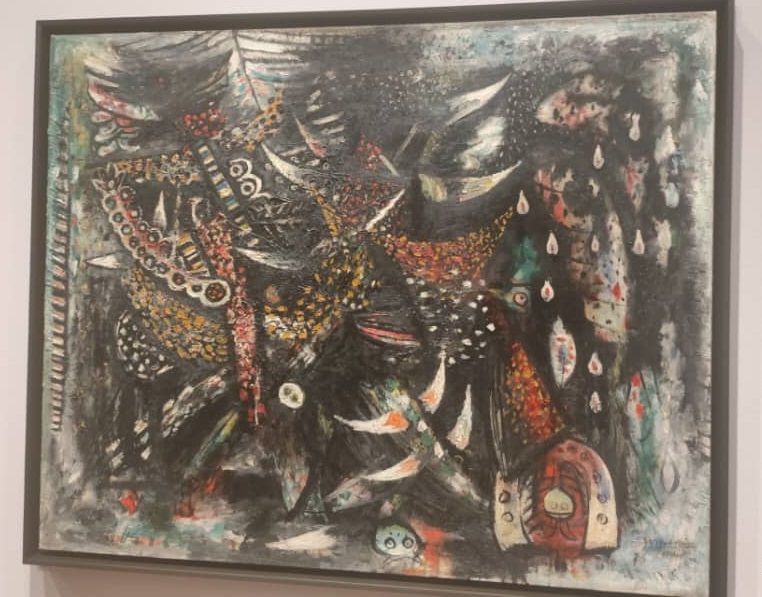 Y a continuación se desarrollan diversos caminos a su llegada a Cuba en agosto de 1941. Por un lado, la persistencia de su experimentación de París, apreciable en “El alma exterior” (1942); por otra, su cercanía con el surrealismo de Marsella en “Tu propia vida” (1942). Y un ciclo fundamental en el desarrollo más valioso de su arte que apreciamos en “Anamú”, 1942, y que guarda estrecha relación con la etnóloga Lydia Cabrera y su profundo conocimiento de las religiones de raíz africana en Cuba y el novelista Alejo Carpentier. Es a partir de este momento en que aparece su obra cumbre “La jungla” (1942-43), en la cual Lam concilia los aportes del arte occidental (cubismo, surrealismo) con los cultos afrocubanos.