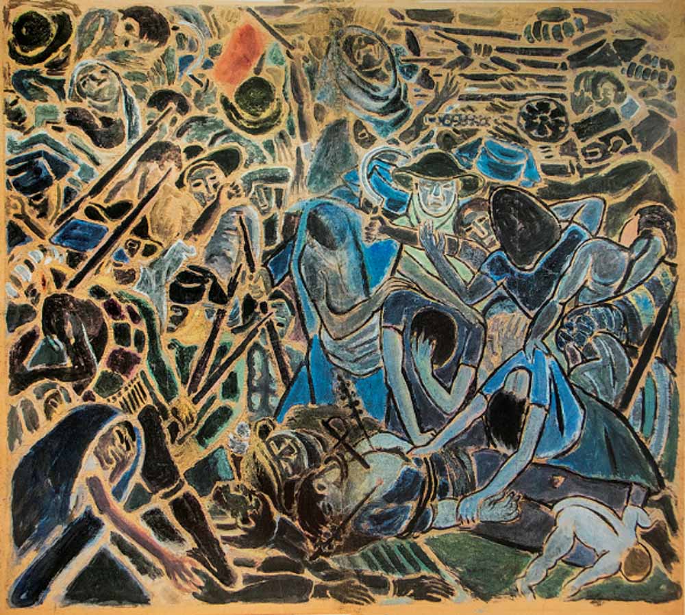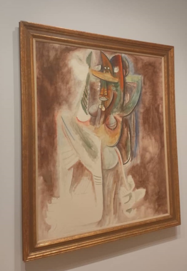 Ya en los años treinta Lam incursiona decididamente en la Modernidad. Entonces la muestra incorpora la fascinante y sensual “La pareja” (1937), poseedora de una fuerte carga erótica y próxima a la estética de Matisse y Picasso. Pero el punto culminante de ese momento, que muestra el compromiso social del artista con la causa de la democracia es, sin dudas, “La guerra civil”, un gouache sobre papel de gran formato, que constituye un alegato contra la barbarie del conflicto bélico español. Realizada para el Pabellón republicano de la Exposición Internacional de París de 1937, sin dudas se trata de la primera obra maestra de Lam, la cual discursa visualmente atravesando la sala al otro extremo con La jungla, hitos culminantes en la carrera del artista.