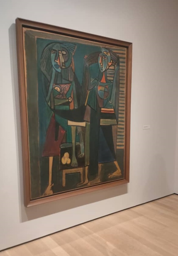 Después viene el espacio dedicado a París y los años decisivos de un lenguaje de experimentación. Matisse, Cezanne, Picasso, las esculturas y máscaras africanas se encuentran entre las búsquedas para Lam de un vocabulario modernista. La exposición le brinda al público la confluencia de esta intensa exploración visual en obras tan significativas como la intensa “Dolor de España” (1938), la impactante “El reposo de la modelo” (1938), la sugerente “Madame Lumumba” (1938) y “Madre e hijo” (1939). Estas obras, unidas a otras en las que se hacen protagónicas las máscaras africanas, dan una orientación precisa de las búsquedas de Lam. Una clase magistral, a través de obras de la mayor significación, de un momento crucial para el artista.