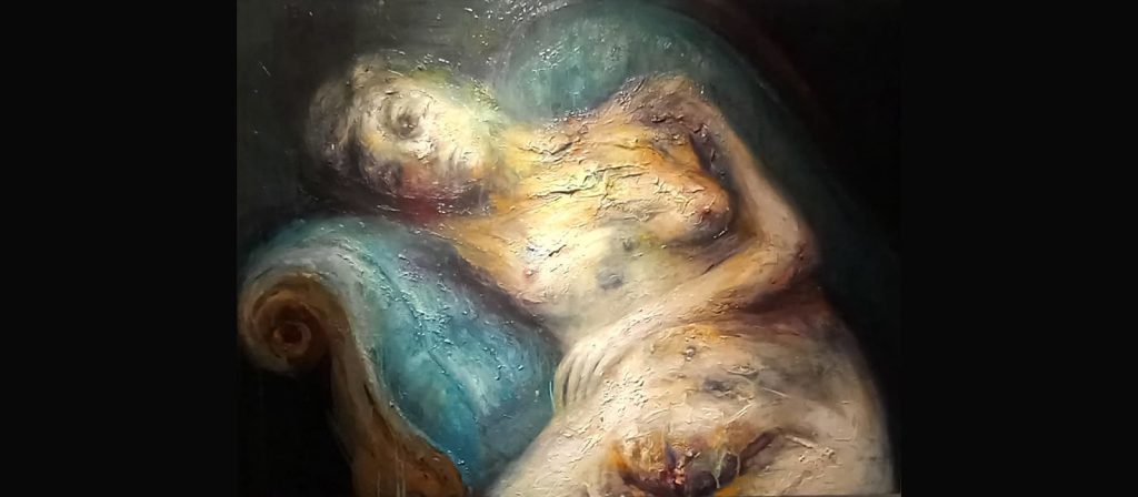 El cuerpo es el templo del alma. Esta muestra se aleja un poco de lo que expuse el año anterior, enfocado en el retrato. Ahora decidí traer el cuerpo porque me resulta muy interesante no sólo desde el punto de vista plástico, sino también para entenderlo de una manera diferente. Desde experiencias muy personales he podido contemplar a la mujer de otro modo; intento que se aleje del canon de este mundo moderno, aún muy patriarcal. Tengo dos hijos y llevo veinte años con mi esposa contemplando esa transformación dentro del cuerpo femenino. Pero ¿cuál es la causa que lleva a un cuerpo a transformarse de modo tan abrupto? La respuesta se me ha hecho muy sencilla cuando noto que se debe a alumbrar la propia existencia de otros seres humanos. Así me muevo entre lo bello y lo perturbador e inquietante.